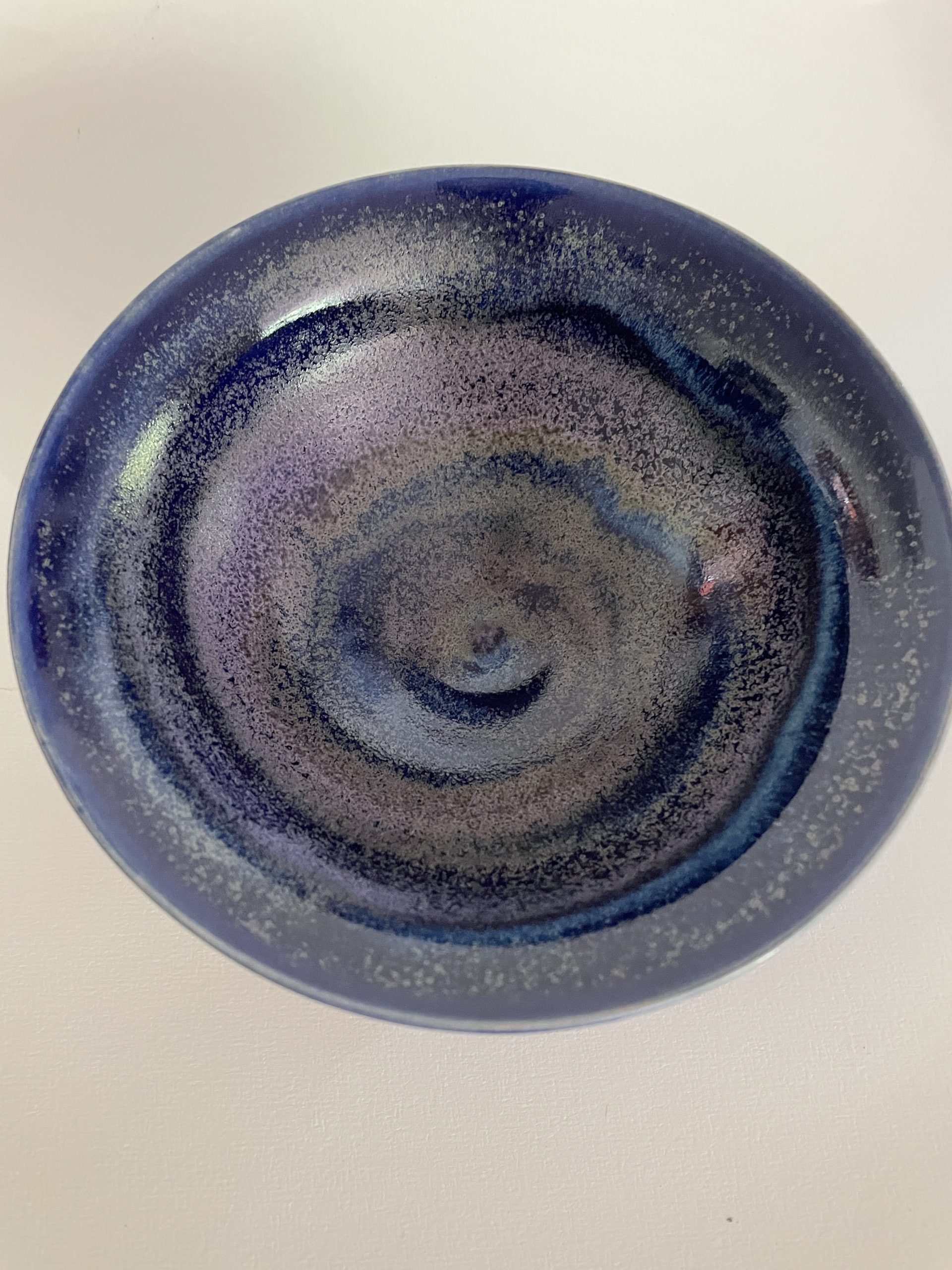 Raku originates in Japan where it was part of the tea ceremony. It was modified in 1950’s America and UK. Once fired pots (biscuit ware) are coated in glaze, heated to around 800 degrees C, and, when at this temperature the pots are plunged into a bin of combustible material such as sawdust. The smoke penetrates the clay, leaving the black colour where there is no glaze. On removal the glaze has little cracks over it, which enhance the beauty of the work.